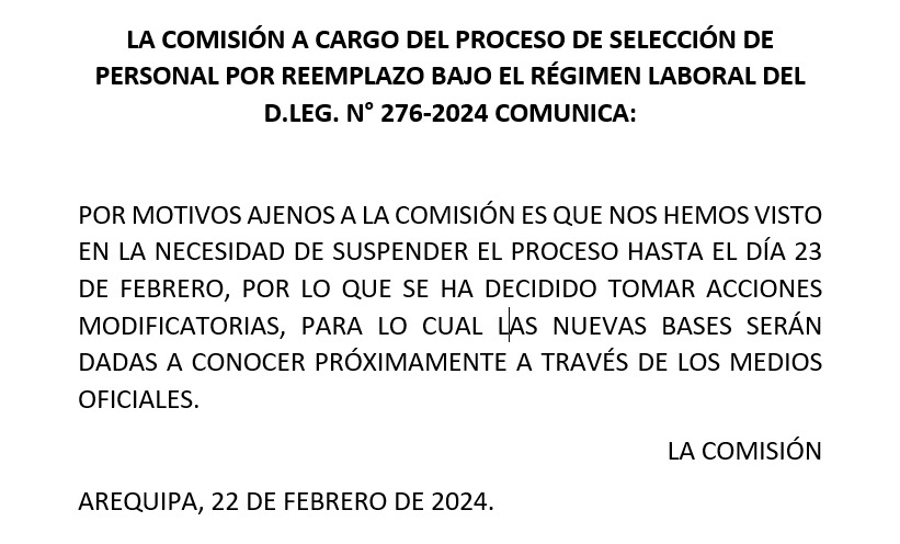 PROCESO DE CONTRATACION TEMPORAL POR REEMPLAZO N° 002-2023-GERESA AREQUIPA, BAJO EL REGIMEN LABORAL 276