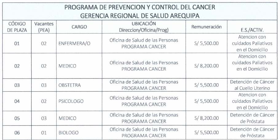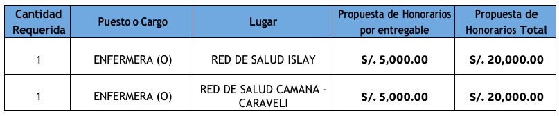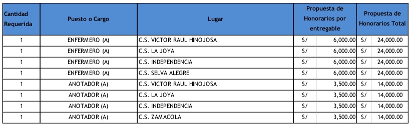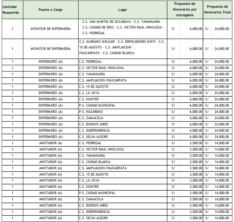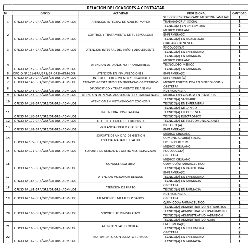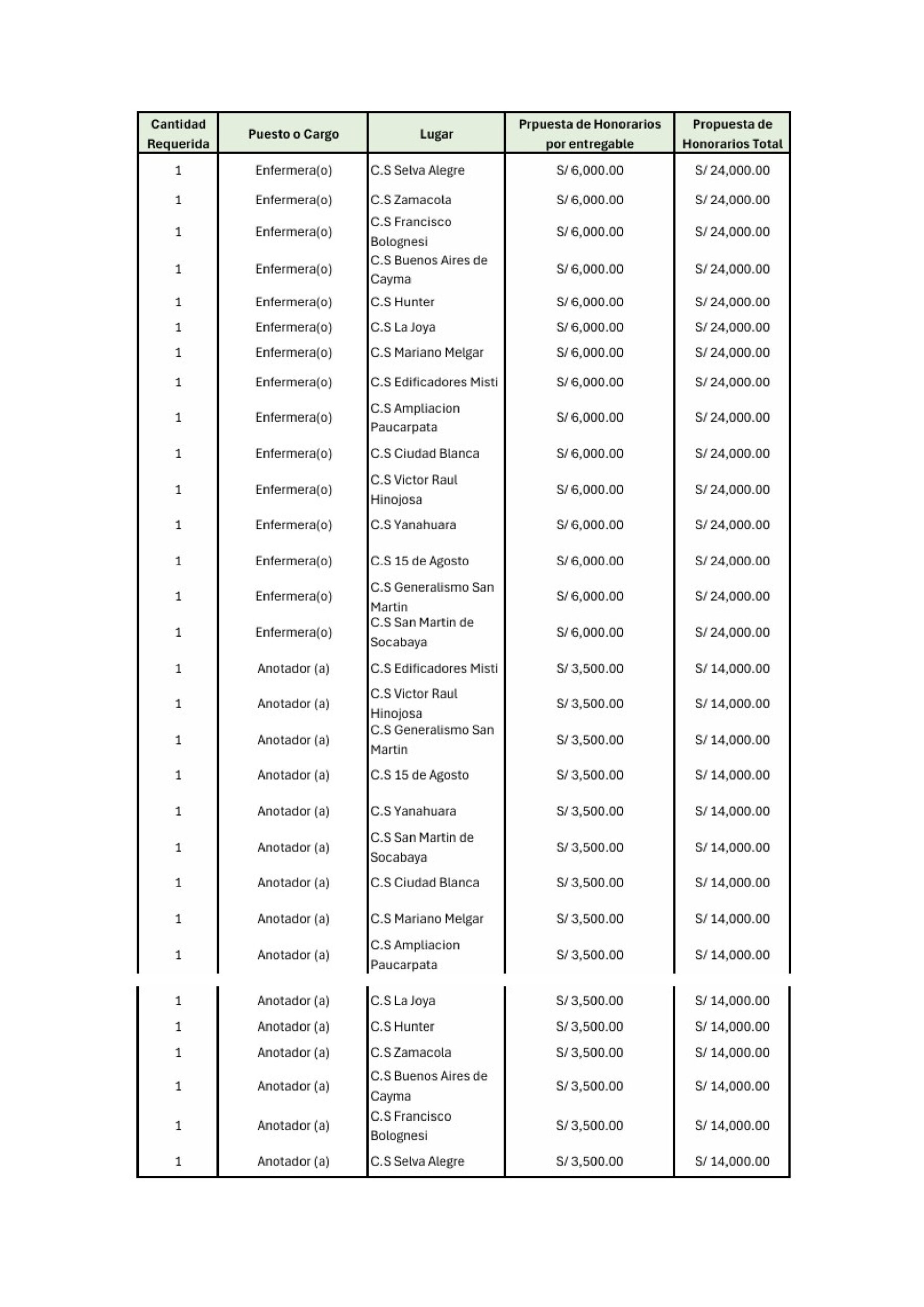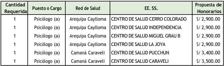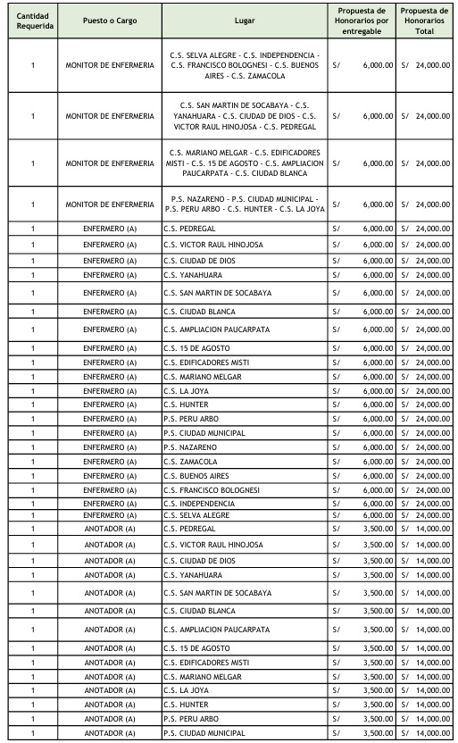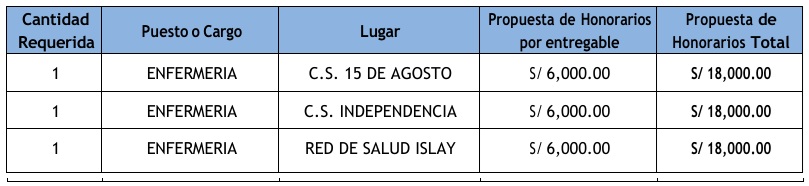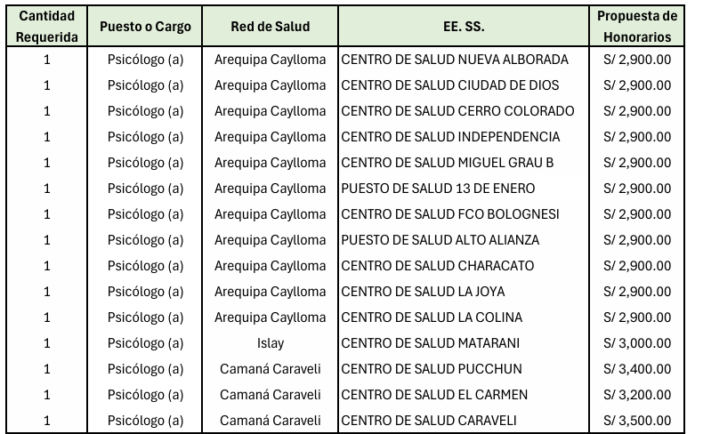 PROCESO PARA CONTRATACIÓN POR LOCACIÓN DE SERVICIO DE PERSONAL PROFESIONAL DE LA SALUD PARA ESTABLECIMIENTOS DE LA RED DE SALUD AREQUIPA CAYLLOMA