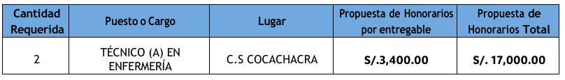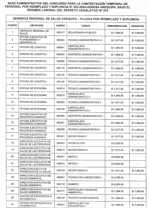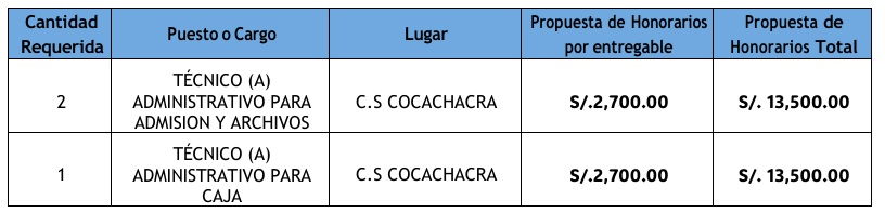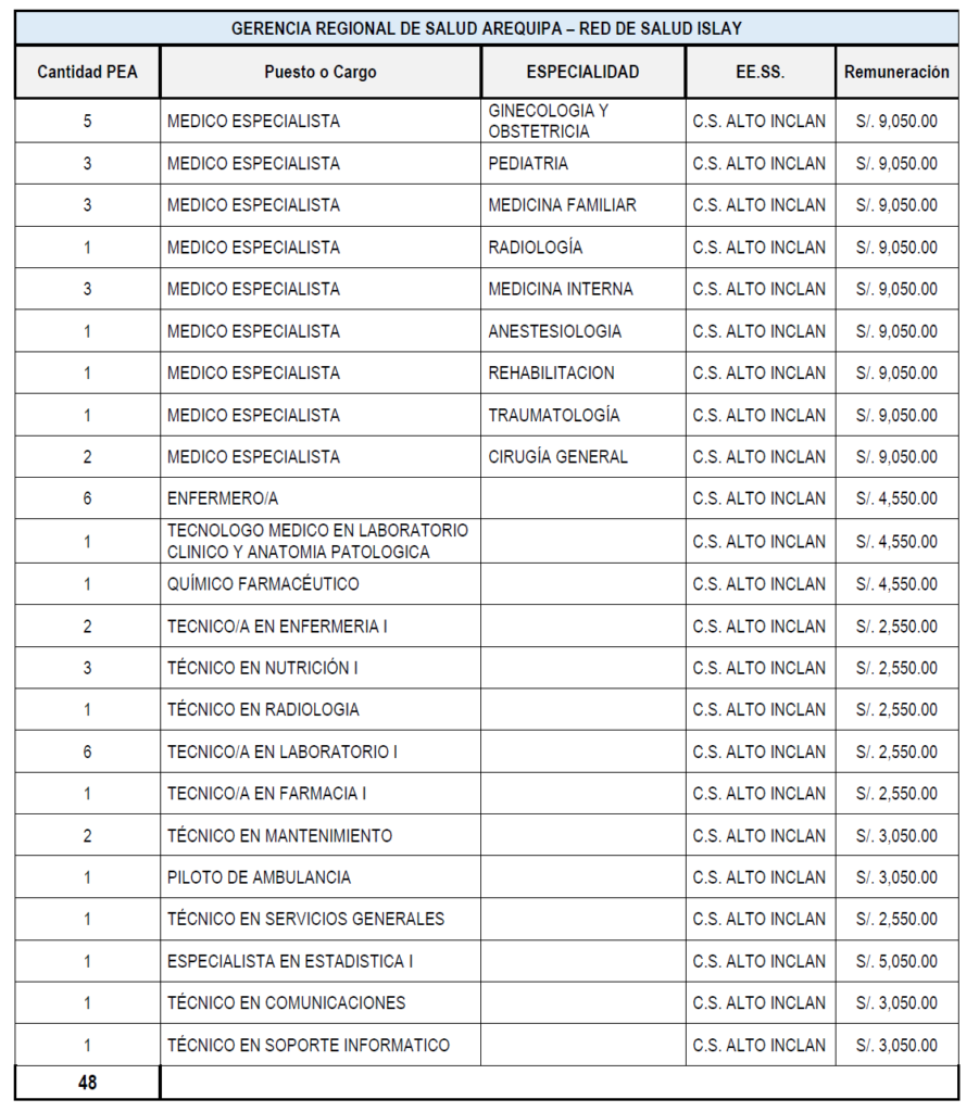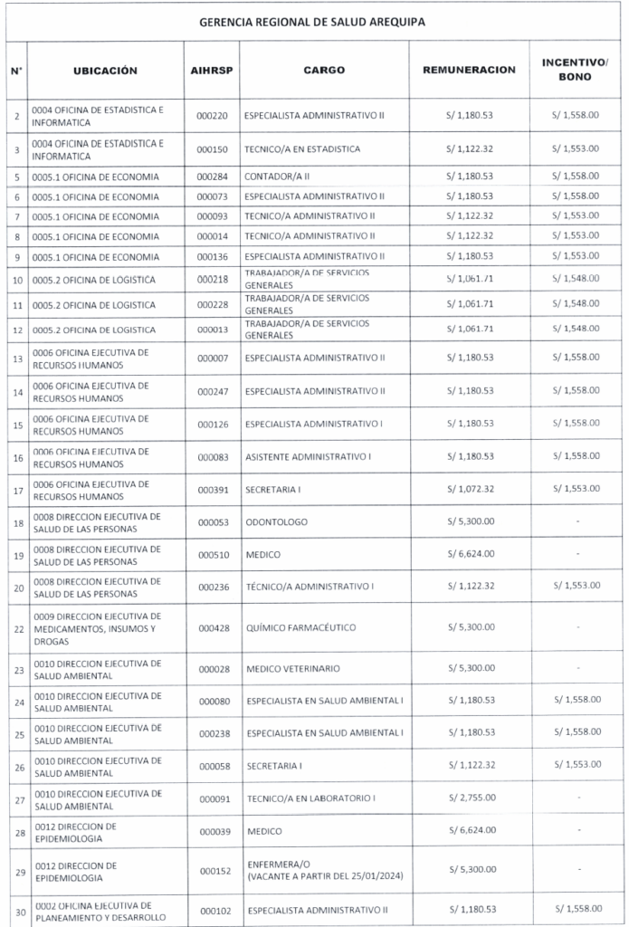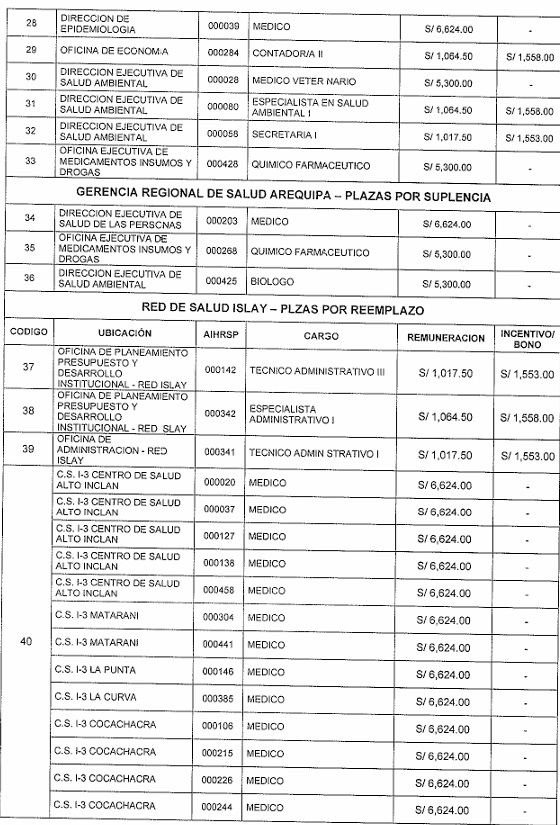 INVITACIÓN PÚBLICA 119-2025: PROCESO DE CONTRATACIÓN DE PERSONAL DE SALUD BAJO LA MODALIDAD SERVICIOS DE TERCEROS TÉCNICOS (AS) ADMINISTRATIVOS PARA BRINDAR EL C.S COCACHACRA – RED DE SALUD ISLAY – GERENCIA REGIONAL DE SALUD AREQUIPA