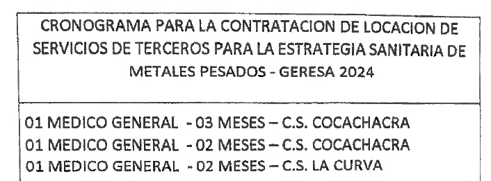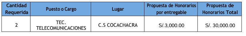 INVITACIÓN PÚBLICA 116-2025: PROCESO DE CONTRATACIÓN DE PERSONAL DE SALUD BAJO LA MODALIDAD SERVICIOS DE TERCEROS TECNICO DE TELECOMUNICACIONES PARA EL C.S COCACHACRA – RED DE SALUD ISLAY – GERENCIA REGIONAL DE SALUD AREQUIPA