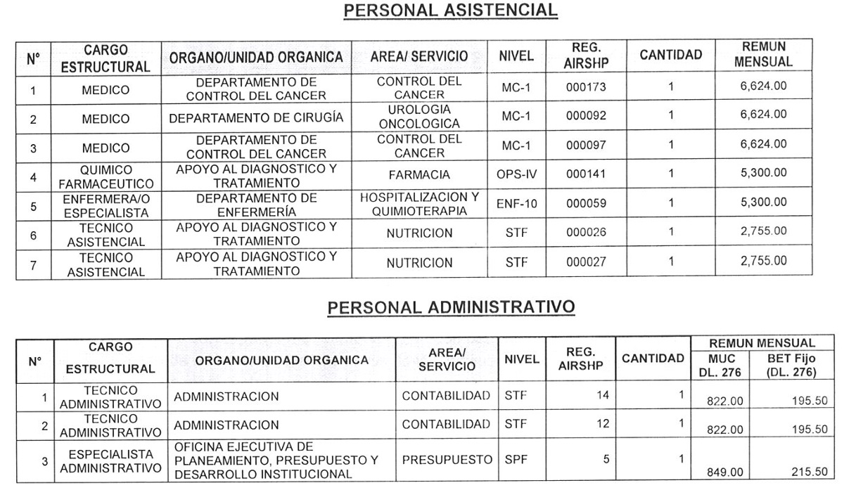 CONCURSO PÚBLICO PARA LA CONTRATACIÓN DE PERSONAL BAJO EL RÉGIMEN ESPECIAL DE CONTRATACIÓN ADMINISTRATIVA DE SERVICIOS D.L. N° 1057