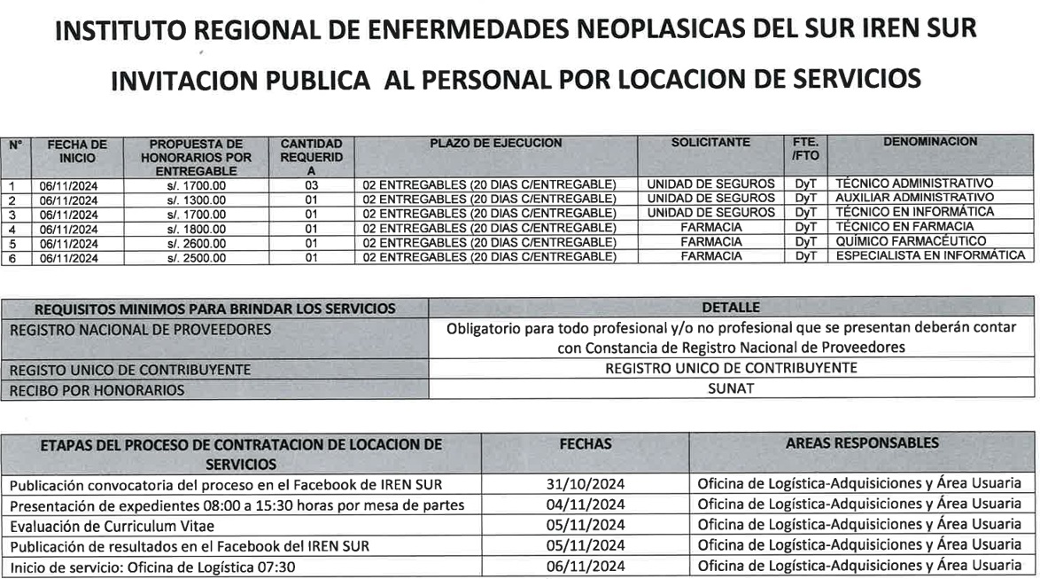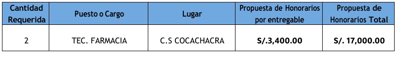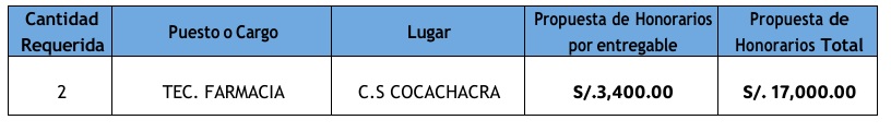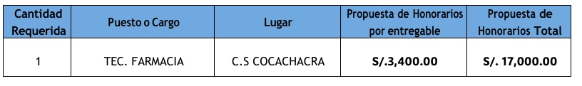 INVITACIÓN PÚBLICA 110-2025: PROCESO DE CONTRATACIÓN DE PERSONAL DE SALUD BAJO LA MODALIDAD SERVICIOS DE TERCEROS DE TECNICO DE FARMACIA PARA BRINDAR APOYO EN FÁRMACO VIGILANCIA PARA EL C.S COCACHACRA – RED DE SALUD ISLAY – GERENCIA REGIONAL DE SALUD AREQUIPA