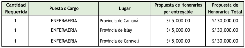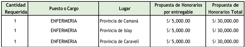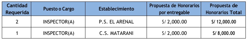 PROCESO DE SELECCIÓN POR SERVICIOS DE TERCEROS DE PROFESIONAL BIOLOGA ITINERANTE PARA CENTRO DE SALUD LA CURVA Y CENTRO DE SALUD MATARANI DE LA RED ISLAY