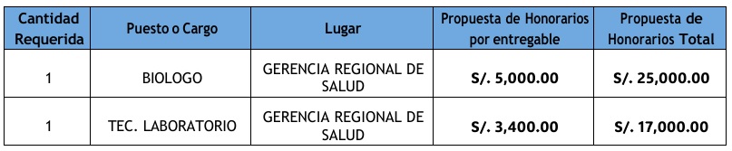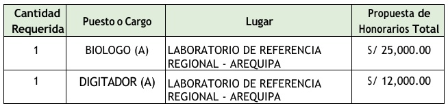 PROCESO DE SELECCIÓN DE SERVICIOS DE TERCEROS DE UN PROFESIONAL BIÓLOGO PARA EL LABORATORIO REFERENCIAL REGIONAL AREQUIPA
