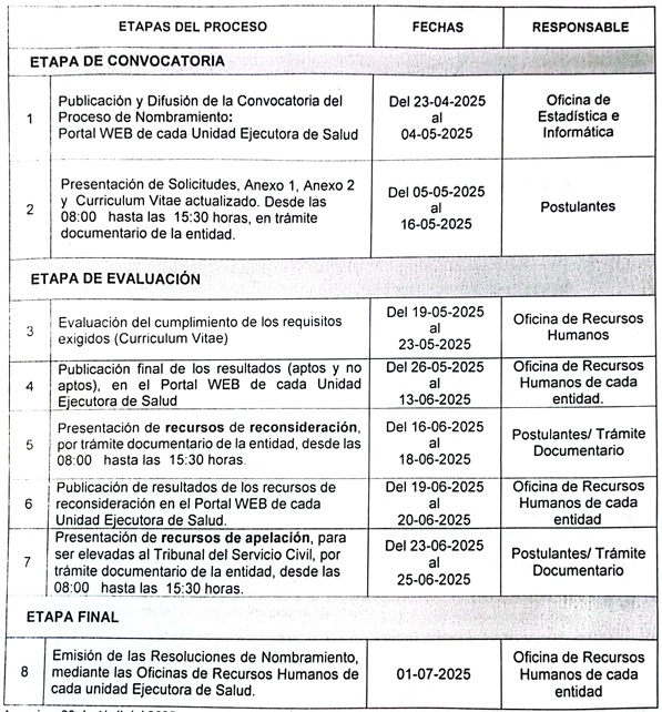 TERMINOS DE REFERENCIA [14/04/2023] RESULTADOS DE REVISIÓN DE EXPEDIENTES [19/04/2023] ABSOLUCION DE RECLAMOS [21/04/2023] RESULTADOS FINALES [24/04/2023]
