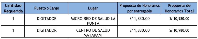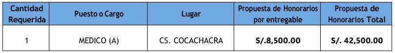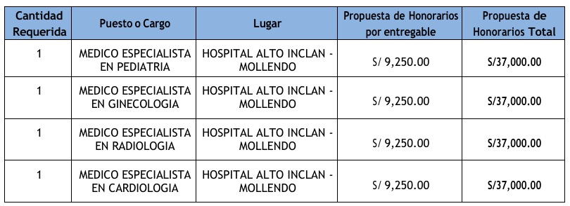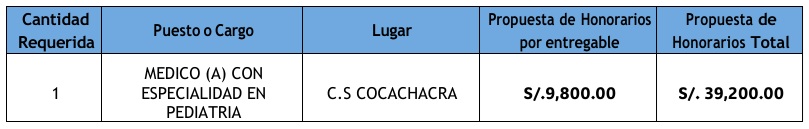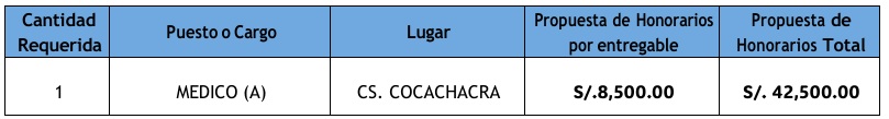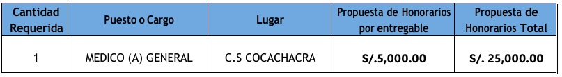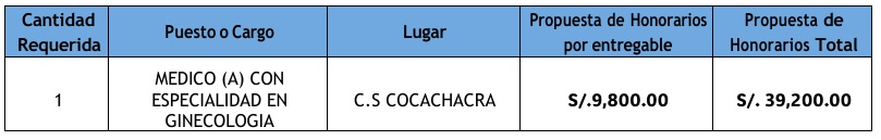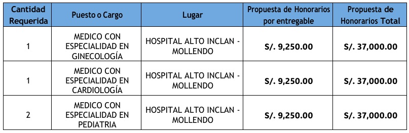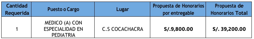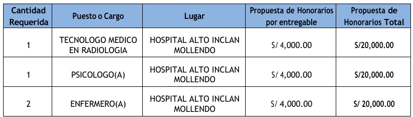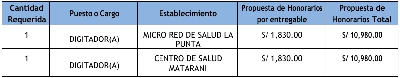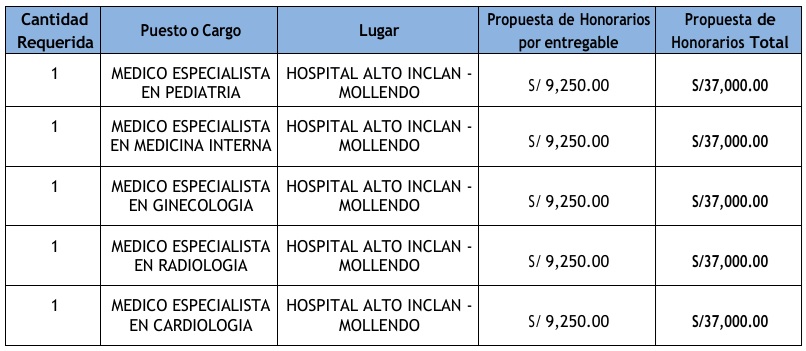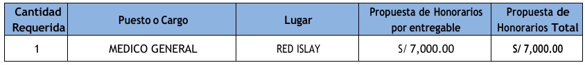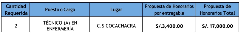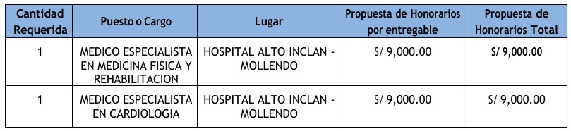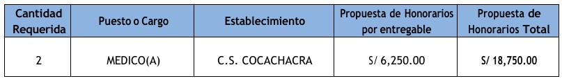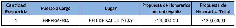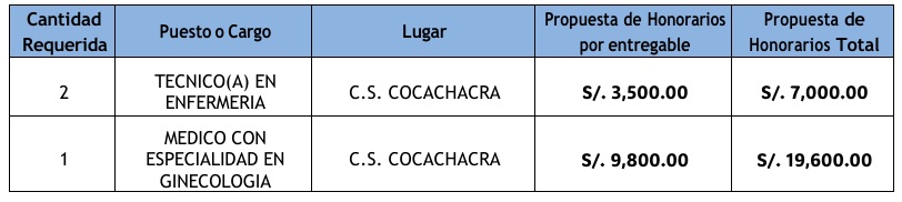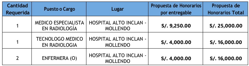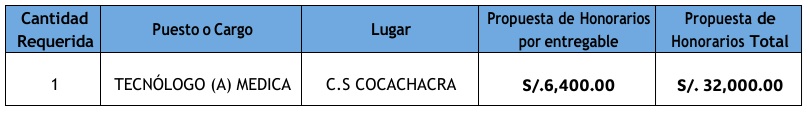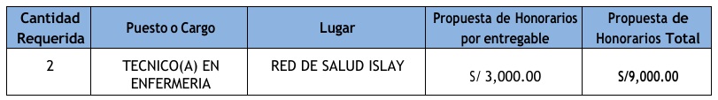 INVITACIÓN PÚBLICA 104-2025: PROCESO DE CONTRATACIÓN DE PERSONAL DE SALUD BAJO LA MODALIDAD SERVICIOS DE TERCEROS DE TECNÓLOGO (A) MEDICA PARA BRINDAR EL SERVICIO DE LABORATORIO CLINICO Y ANATOMIA PATALÓGICA EN EL C.S COCACHACRA – RED DE SALUD ISLAY