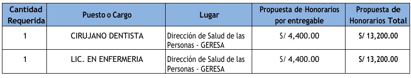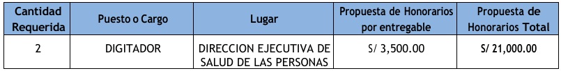 PERSONAL REQUERIDO PARA CONTRATO DE SERVICIOS DE TERCEROS PARA LAS AREAS DE INVERSIONES Y UNIDAD FORMULADORA E INFRAESTRUCTURA DE LA GERENCIA REGIONAL DE SALUD AREQUIPA