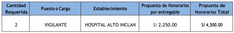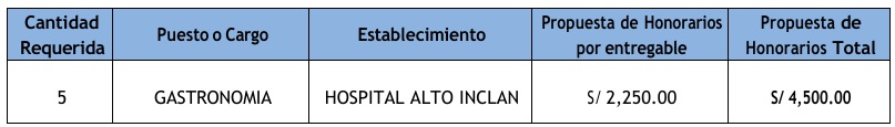 CONTRATACIÓN DE SERVICIOS DE TÉCNICOS POR SERVICIO DE TERCEROS PARA PUESTA EN MARCHA DE MEJORAMIENTO Y AMPLIACÓN DE LOS SERVICIOS DE SALUD DEL ESTABLECIMIENTO DE SALUD DE ALTO INCLÁN