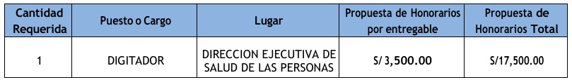 Contratación de un personal para el servicio de Procesamiento de datos, para el Programa de Prevención y Tratamiento de Consumo de Drogas