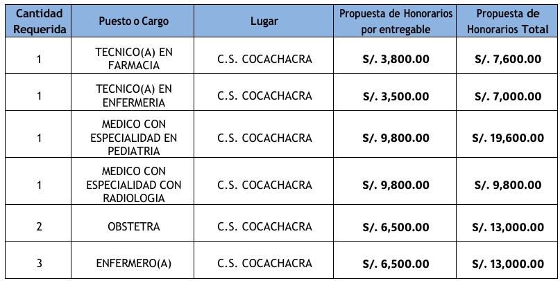INVITACIÓN PÚBLICA 111-2025: PROCESO DE CONTRATACIÓN DE PERSONAL DE SALUD BAJO LA MODALIDAD SERVICIOS DE TERCEROS DE TECNICO DE FARMACIA PARA LA RECEPCIÓN Y ALMACENAMIENTO DE MEDICAMENTOS PARA EL C.S COCACHACRA – RED DE SALUD ISLAY – GERENCIA REGIONAL DE SALUD AREQUIPA