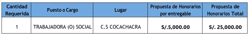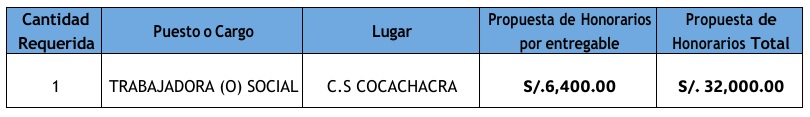 INVITACIÓN PÚBLICA 106-2025: PROCESO DE CONTRATACIÓN DE PERSONAL DE SALUD BAJO LA MODALIDAD SERVICIOS DE TERCEROS DE TRABAJADOR (A) SOCIAL PARA BRINDAR EL SERVICIO EN ACOMPAÑAMIENTO SOCIAL CONSULTA EXTERNA EN EL C.S COCACHACRA – RED DE SALUD ISLAY – GERENCIA REGIONAL DE SALUD AREQUIPA
