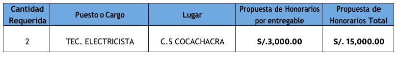 INVITACIÓN PÚBLICA 107-2025: PROCESO DE CONTRATACIÓN DE PERSONAL DE SALUD BAJO LA MODALIDAD SERVICIOS DE TERCEROS DE TECNICO ELECTRICISTA PARA BRINDAR EL SERVICIO DE MANTENIMIENTO EN EL C.S COCACHACRA – RED DE SALUD ISLAY – GERENCIA REGIONAL DE SALUD AREQUIPA