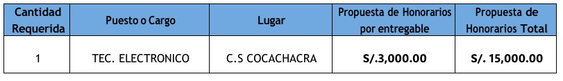 INVITACIÓN PÚBLICA 109-2025: PROCESO DE CONTRATACIÓN DE PERSONAL DE SALUD BAJO LA MODALIDAD SERVICIOS DE TERCEROS DE TECNICO ELECTRONICO PARA ELSERVICIO DE MANTENIMIENTO EN EL C.S COCACHACRA – RED DE SALUD ISLAY – GERENCIA REGIONAL DE SALUD AREQUIPA