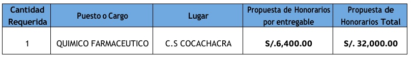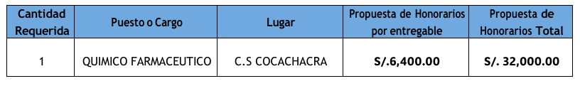 INVITACIÓN PÚBLICA 114-2025: PROCESO DE CONTRATACIÓN DE PERSONAL DE SALUD BAJO LA MODALIDAD SERVICIOS DE TERCEROS DE QUIMICO FARMACEUTICO PARA BRINDAR EL SERVICIO DE FARMACOVIGILANCIA EN EL C.S COCACHACRA – RED DE SALUD ISLAY – GERENCIA REGIONAL DE SALUD AREQUIPA