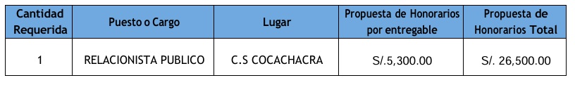 INVITACIÓN PÚBLICA 115-2025: PROCESO DE CONTRATACIÓN DE PERSONAL DE SALUD BAJO LA MODALIDAD SERVICIOS DE TERCEROS RELACIONISTA PUBLICO PARA EL C.S COCACHACRA – RED DE SALUD ISLAY – GERENCIA REGIONAL DE SALUD AREQUIPA