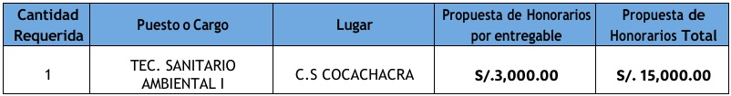 INVITACIÓN PÚBLICA 108-2025: PROCESO DE CONTRATACIÓN DE PERSONAL DE SALUD BAJO LA MODALIDAD SERVICIOS DE TERCEROS DE TECNICO SANIATARIO AMBIENTAL PARA EL C.S COCACHACRA – RED DE SALUD ISLAY – GERENCIA REGIONAL DE SALUD AREQUIPA