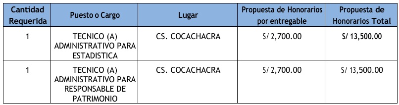 INVITACIÓN PÚBLICA 120-2025: PROCESO DE CONTRATACIÓN POR LOCACIÓN DE SERVICIOS DE TÉCNICOS ADMINISTRATIVOS PARA EL CS. COCACHACRA RED DE SALUD ISLAY – REGIÓN AREQUIPA.