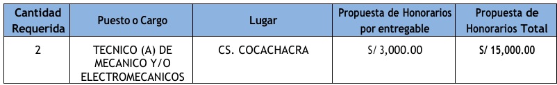 INVITACIÓN PÚBLICA 121-2025: PROCESO DE CONTRATACIÓN PROFESIONAL POR LOCACIÓN DE SERVICIOS DE TÉCNICOS MECÁNICOS Y/O ELECTROMECÁNICOS PARA EL CS. COCACHACRA RED DE SALUD ISLAY – REGIÓN AREQUIPA.