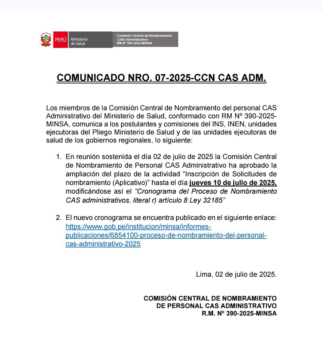 BASES [30/05/2023] Perfiles de CAS [30/05/2023] FICHA UNICA DE DATOS [30/05/2023] FICHA AUTO EVALUACION PROCESO CAS [31/05/2023] FE DE ERRATAS [21/06/2023] Resultados Preliminares [21/06/2023] Absolución de reclamos [23/06/2023] Comunicado [23/06/2023] Resultados Finales [27/06/2023] COMUNICADO [04/08/2023]